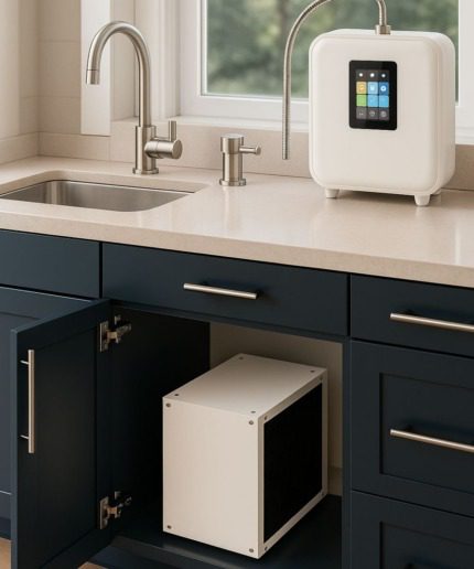 ICEWAT R80 es un enfriador compacto para instalar bajo el fregadero. Ideal para hogares de 1 a 5 personas, permite disfrutar de agua fría de forma cómoda, sin ocupar espacio en el frigorífico. Perfecto para conectar a tu grifo de cocina. No recomendado para gimnasios ni zonas de alto consumo.